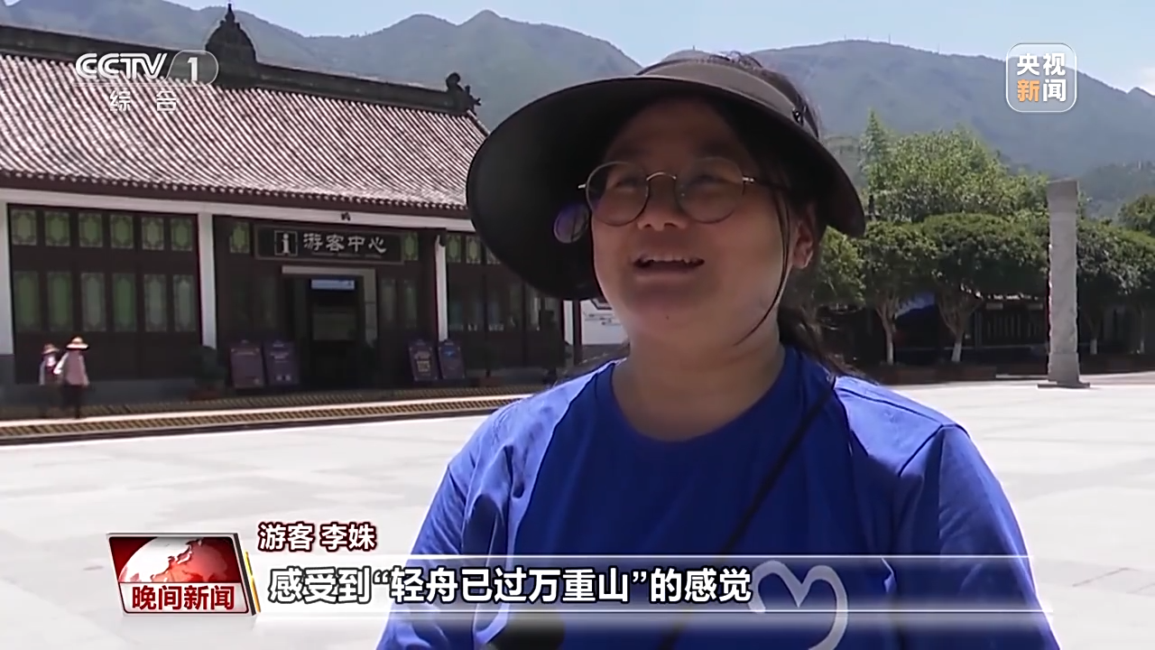 游客 李姝:跟着李白的脚步,一起来到了奉节,感受“轻舟已过万重山”,这里的文化确实不一样,让我觉得非常吸引人,有一种古人诚不欺我的感觉。