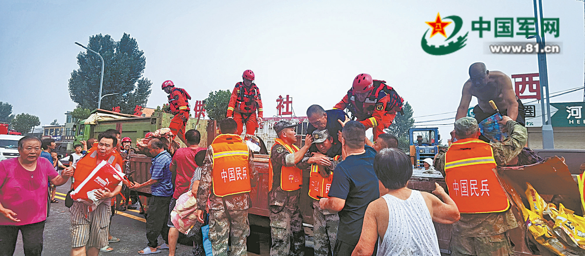 狂风暴雨中,解放军和武警部队驰援灾区的多支部队,与京津冀和东北地区民兵、地方专业应急力量共同展开空中地面立体救援行动,书写新时代军地一体应急救援行动新篇章。