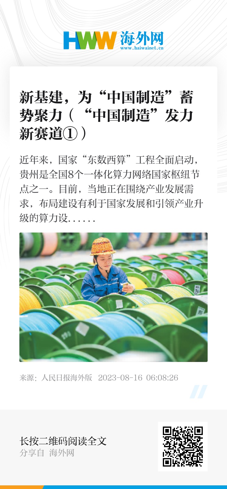 自动下料、智能排产、快速检测……伴随数字技术发展,中国制造业的运行方式发生着深刻变化。这背后,新型基础设施是重要支撑,对“中国制造”数字转型、智能升级、融合创新起着强有力的推动作用。
