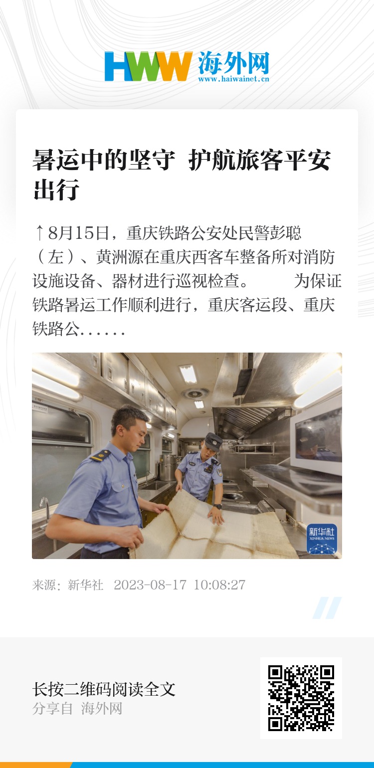为保证铁路暑运工作顺利进行,重庆客运段、重庆铁路公安处、重庆车辆段、重庆机务段、重庆车站等部门人员坚守岗位,对入库车辆进行全列巡视、设备检修、用品更换、车辆清洁等工作,确保列车次日发车时,旅客能够享受到安全舒适的乘车环境。