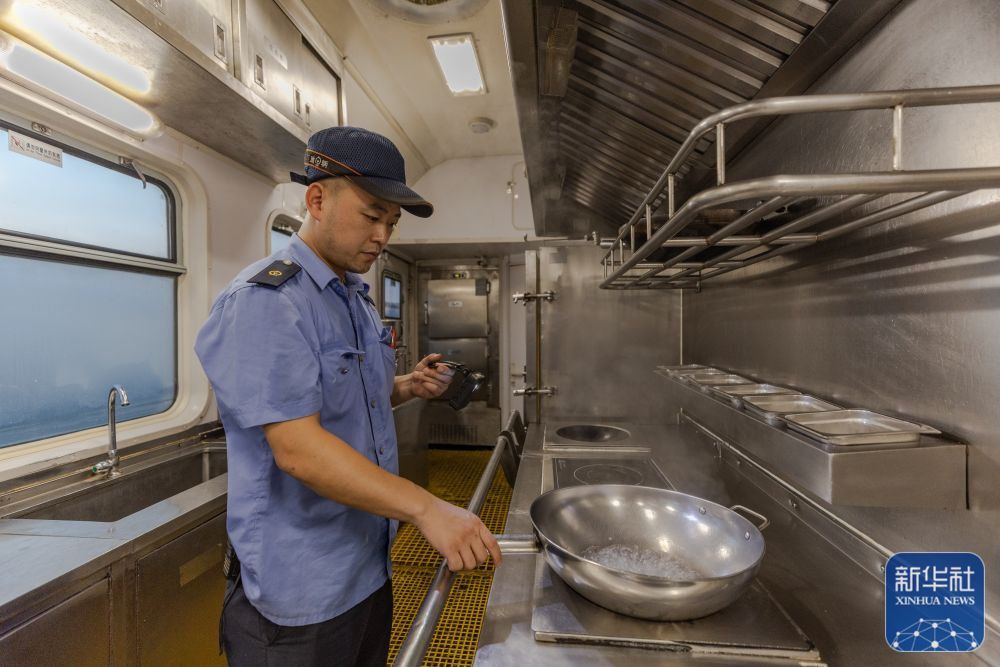 ↑8月15日,重庆车辆段工作人员在重庆西客车整备所对列车餐车电器设备进行检测调试。