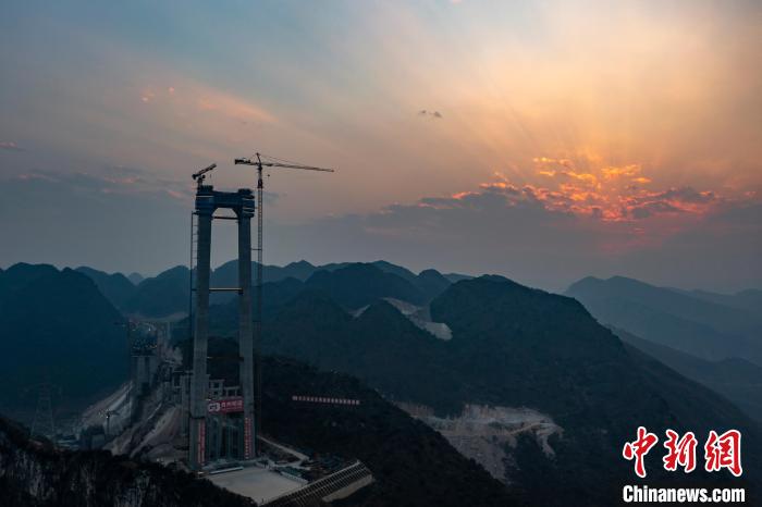 资料图:花江大峡谷大桥主塔体。杨再友摄