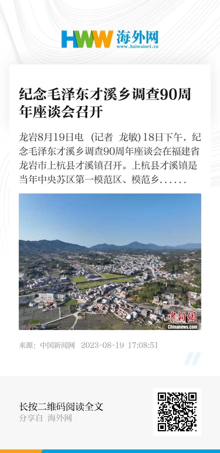中新网龙岩8月19日电 (记者 龙敏)18日下午,纪念毛泽东才溪乡调查90周年座谈会在福建省龙岩市上杭县才溪镇召开。
