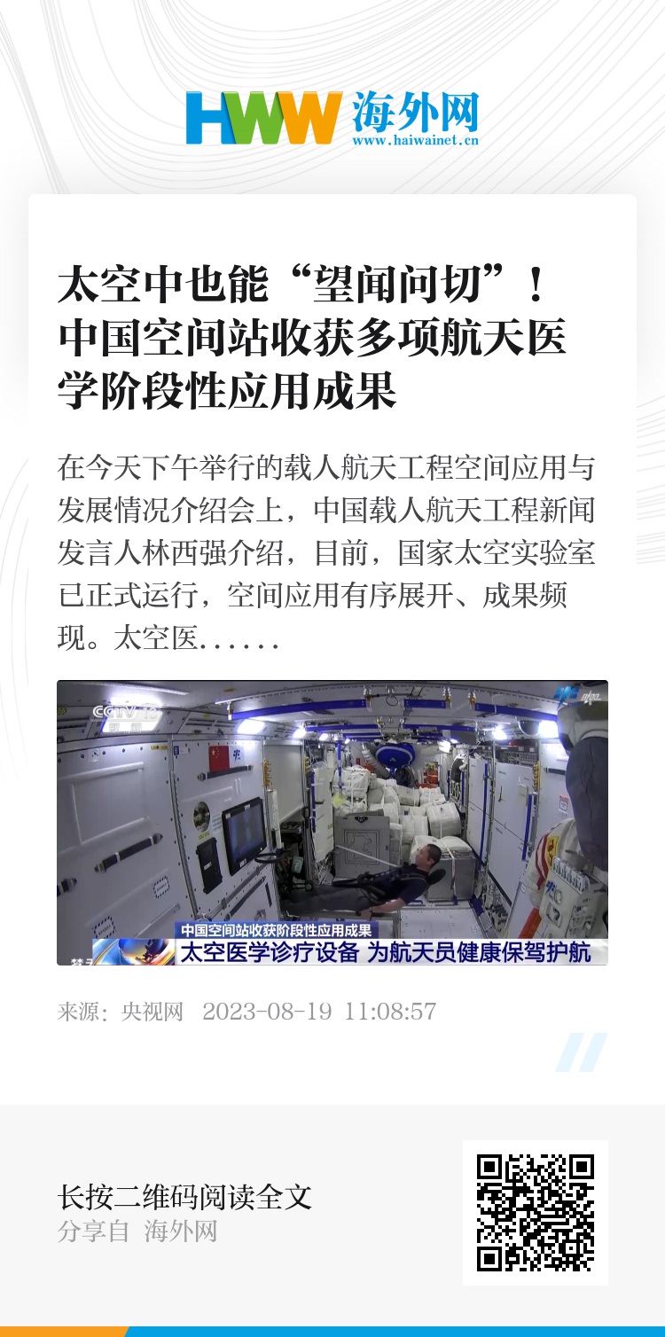 中国传统医学的在轨应用是航天医学科学体系的重要组成部分,通过太空中医诊疗设备终端,中医经典的“望、闻、问、切”诊疗手段,在中国人的“太空家园”得到实现。