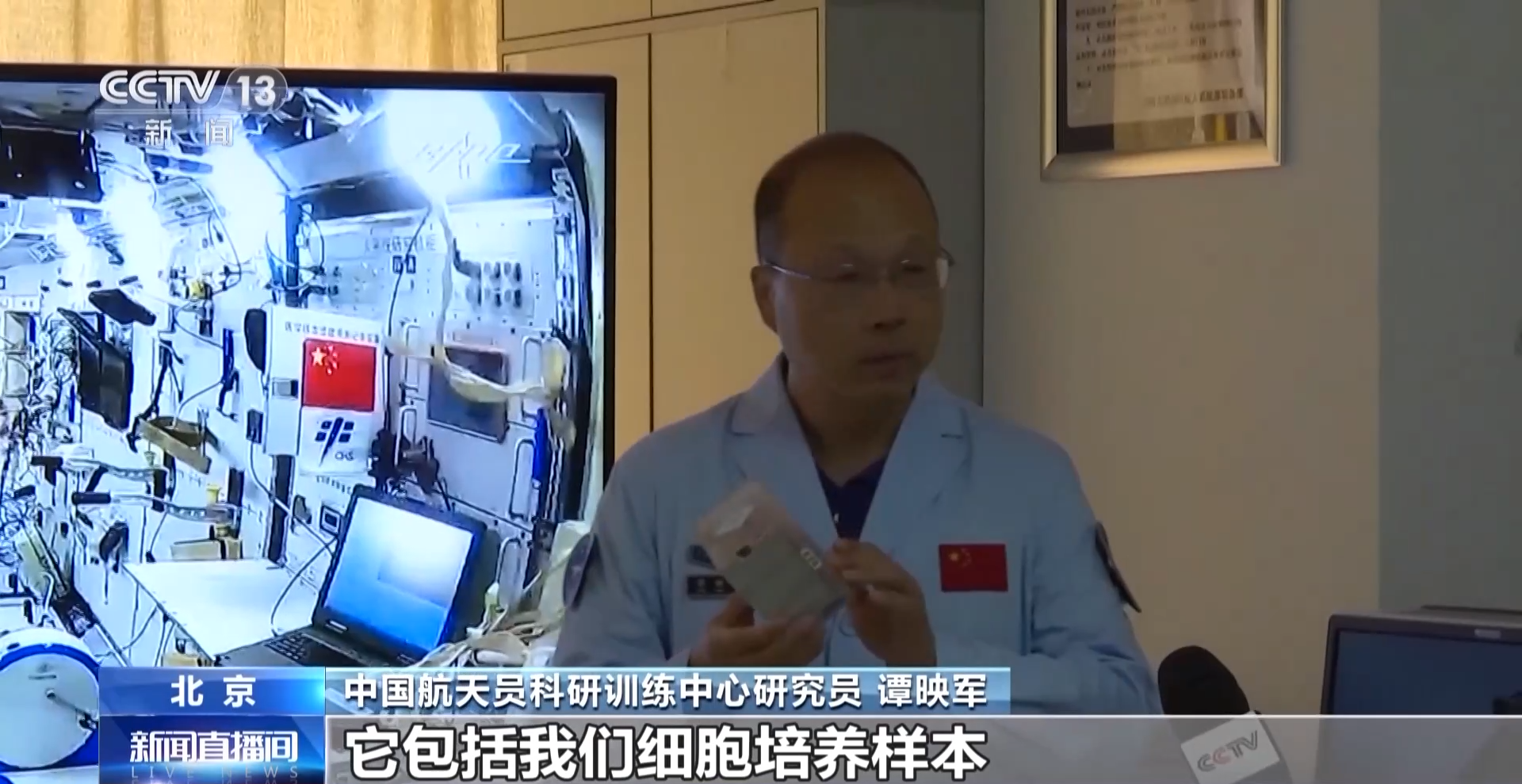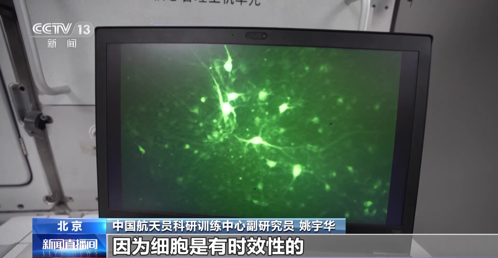 中国航天员科研训练中心副研究员 姚宇华:航天员进入空间站之后,做的第一个实验就是细胞研究实验。因为细胞是有时效性的,在地面准备好细胞样本之后,航天员首先就会把细胞装进医学样本制备装置中进行培养操作。