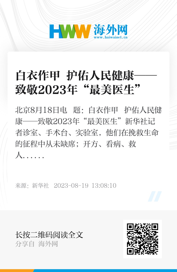 新华社北京8月18日电 题:白衣作甲 护佑人民健康——致敬2023年“最美医生”