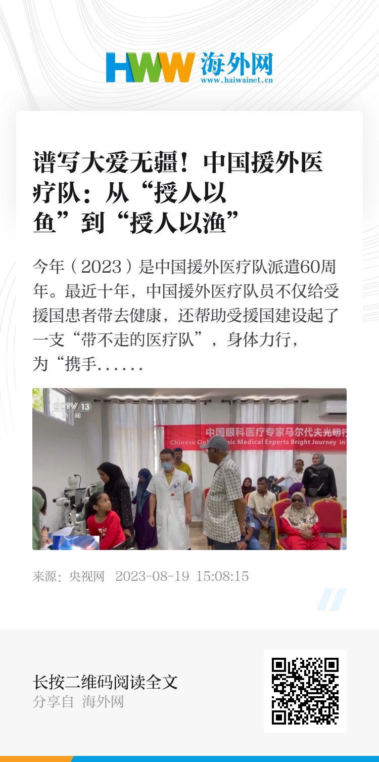 授人以“鱼”更要授人以“渔”,为了可持续地提升当地医疗水平,国家卫生健康委和广东省卫健委依托马尔代夫胡鲁马累医院,建立了中国—马尔代夫眼科中心,这是中国在国外援助开设的第一家现代化、标准化的眼科中心。