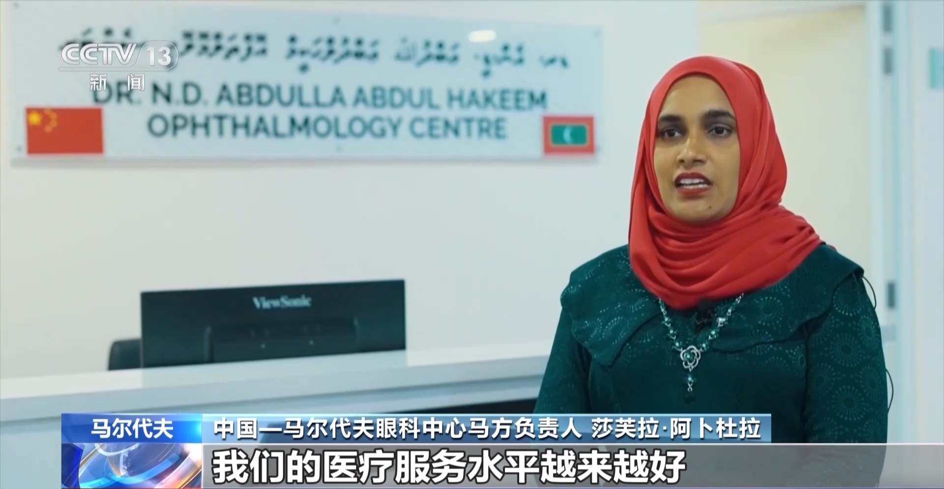 中国—马尔代夫眼科中心马方负责人 莎芙拉·阿卜杜拉:有了中国医疗队的帮助,我们的医疗服务水平越来越好,非常感谢来自中山大学中山眼科中心的医护,也感谢中国政府,谢谢你们。