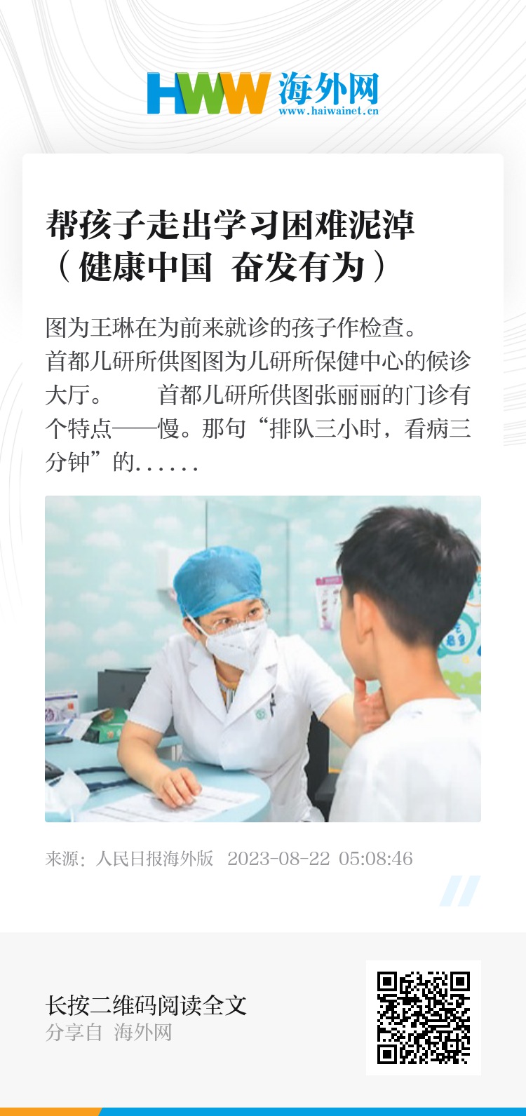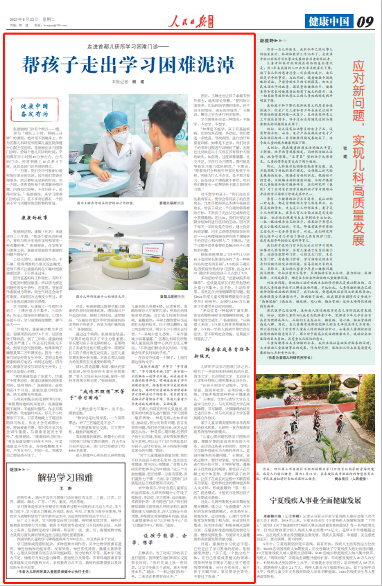 “对于儿童健康高质量发展,我们不仅关注孩子的生长发育、也关注生理健康,更关注心理健康。”首都儿科研究所党委书记刘中勋说,“这三个方面的健康,老百姓哪一方面有需要,我们就致力于哪一方面。学习困难门诊就是回应百姓需要而开设的。”