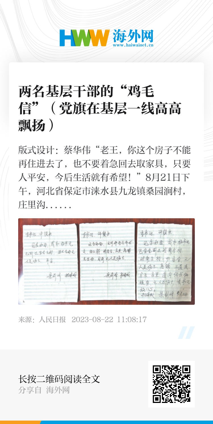 信写好了,谁来送?杨春城迟疑之际,张生海走上前一把抢过信件:“老杨,你们赶紧去下一个村,这封信我来送!保证完成任务!”“好!这封信关乎镇党委的下一步救援计划,你把它当‘鸡毛信’,务必平安送到李书记手上!”杨春城再三嘱咐。
