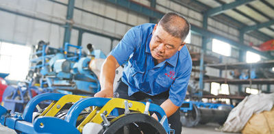 平头、汗衫,一双粗糙的手,“都说我像个农民,我本身就是个地地道道的农民嘛!”一到收获的季节,新疆维吾尔自治区昌吉回族自治州玛纳斯县祥和农机有限责任公司总经理张书祥不是“泡”在地里,就是待在工厂里。“农机研发离不开调研,只有多看看农民需要什么,才能确定研发方向。”他说。