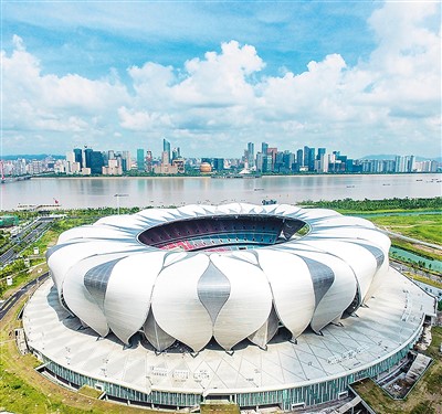 绿色节俭是杭州亚运会的办赛理念。在场馆建设上,杭州亚运会遵循“能改不建、能修不换、能租不买、能借不租”的理念,新建场馆约占全部场馆的1/5,其余均为改建类场馆。