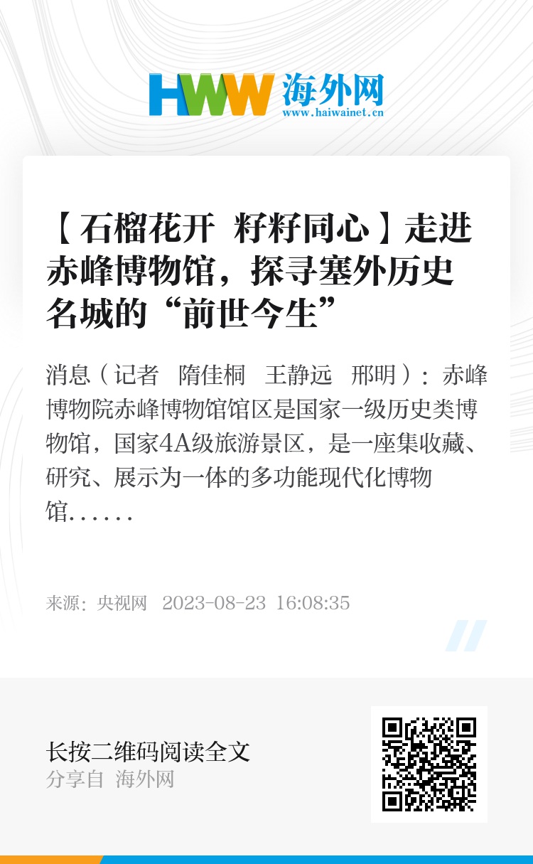 央视网消息(记者 隋佳桐 王静远 邢明):赤峰博物院赤峰博物馆馆区是国家一级历史类博物馆,国家4A级旅游景区,是一座集收藏、研究、展示为一体的多功能现代化博物馆。