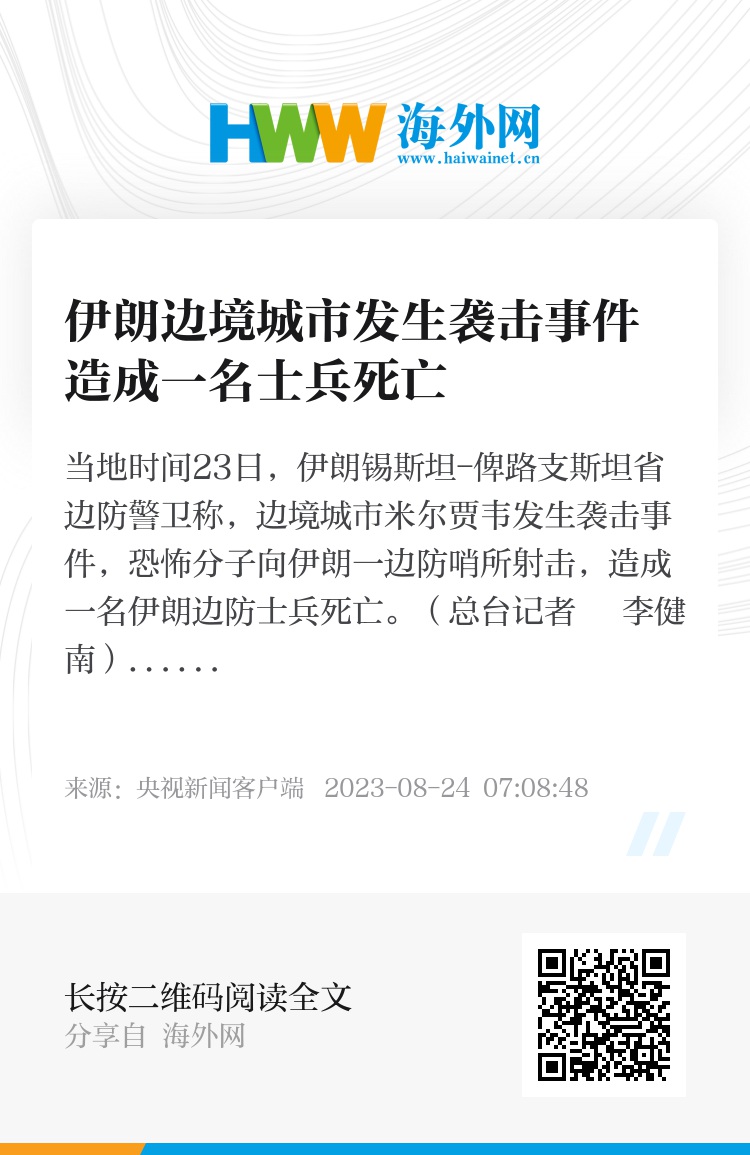 当地时间23日,伊朗锡斯坦-俾路支斯坦省边防警卫称,边境城市米尔贾韦发生袭击事件,恐怖分子向伊朗一边防哨所射击,造成一名伊朗边防士兵死亡。(总台记者 李健南)
