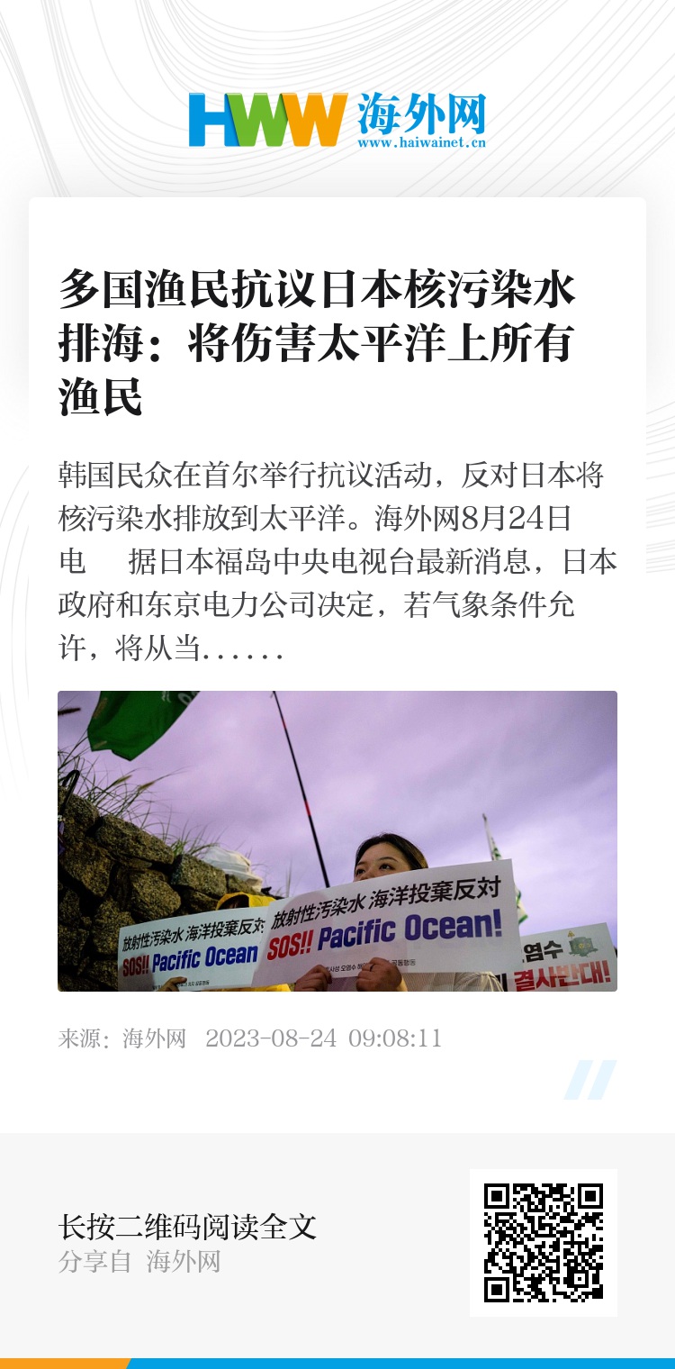 抗议者们还强调,如果核污染水被排放到海洋中,将对太平洋的所有生态系统,以及生活在太平洋上的所有渔民造成破坏,“我们渔民将共同捍卫我们的生存权,直到最后。”