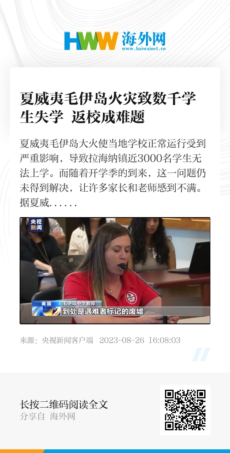 夏威夷毛伊岛大火使当地学校正常运行受到严重影响,导致拉海纳镇近3000名学生无法上学。而随着开学季的到来,这一问题仍未得到解决,让许多家长和老师感到不满。