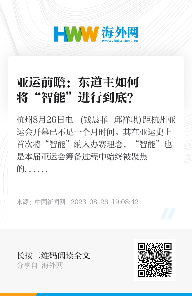 中新网杭州8月26日电 (钱晨菲 邱祥琪)距杭州亚运会开幕已不足一个月时间。其在亚运史上首次将“智能”纳入办赛理念,“智能”也是本届亚运会筹备过程中始终被聚焦的关键词之一。东道主如何将智能进行到底?又将在赛时为各国来宾带来何种新奇体验?