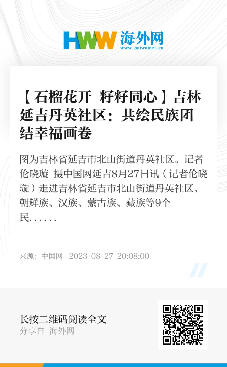 中国网延吉8月27日讯(记者伦晓璇)走进吉林省延吉市北山街道丹英社区,朝鲜族、汉族、蒙古族、藏族等9个民族居民在这里齐聚,尽管文化不同、习俗不同,但各民族居民互帮互助,相亲相爱,共叙民族团结情谊。
