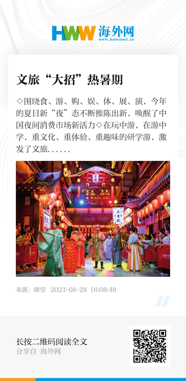 ◇围绕食、游、购、娱、体、展、演,今年的夏日新“夜”态不断推陈出新,唤醒了中国夜间消费市场新活力