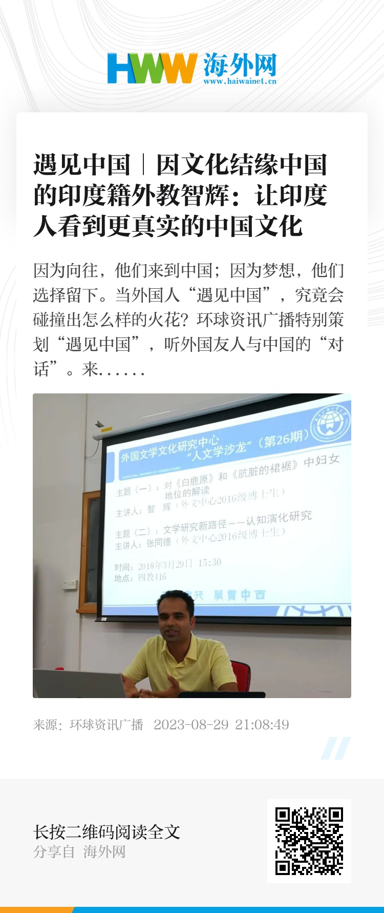 也因此,智辉有了更为强烈的使命感。他曾在印度多所知名学校演讲印地语的教育与发展、印中关系等,为的就是推动印中文化交流,让印度人了解中国这个具有悠久历史和灿烂文明的国家。他也期待更多印度青年到中国走走看看,了解更真实的中国。
