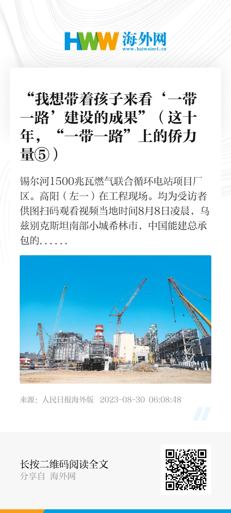 从事建筑工程行业后,高阳明显感觉到,“一带一路”倡议提出以来,越来越多中国企业开始走进中亚国家:“中国企业不仅给华商侨企带来了机遇,也将资金、技术和管理经验带到当地,助力当地发展。”