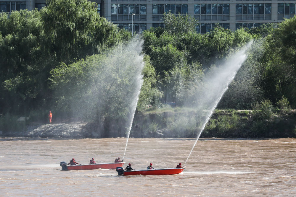 8月14日,甘肃省消防救援总队等开展水域救援实战化演练。新华社记者 马希平 摄