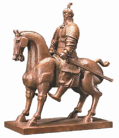 艺术家赵奇的《汉武帝经略西域》,以汉武帝派遣张骞出使西域的历史情节为主题,利用三联的形式展现使臣团在西域的经历。为了创作这件作品,赵奇前往新疆、甘肃、陕西等地采风写生。他回忆说:“当地的出土文物、文字记载让我深受感触,不仅影响了这件作品的创作,也为我后面的创作打下了基础。”
