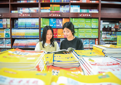 临近开学,教辅书籍畅销。图为8月29日,在湖南省娄底市某书城,学生选购教辅书籍。吴永华摄(人民图片)