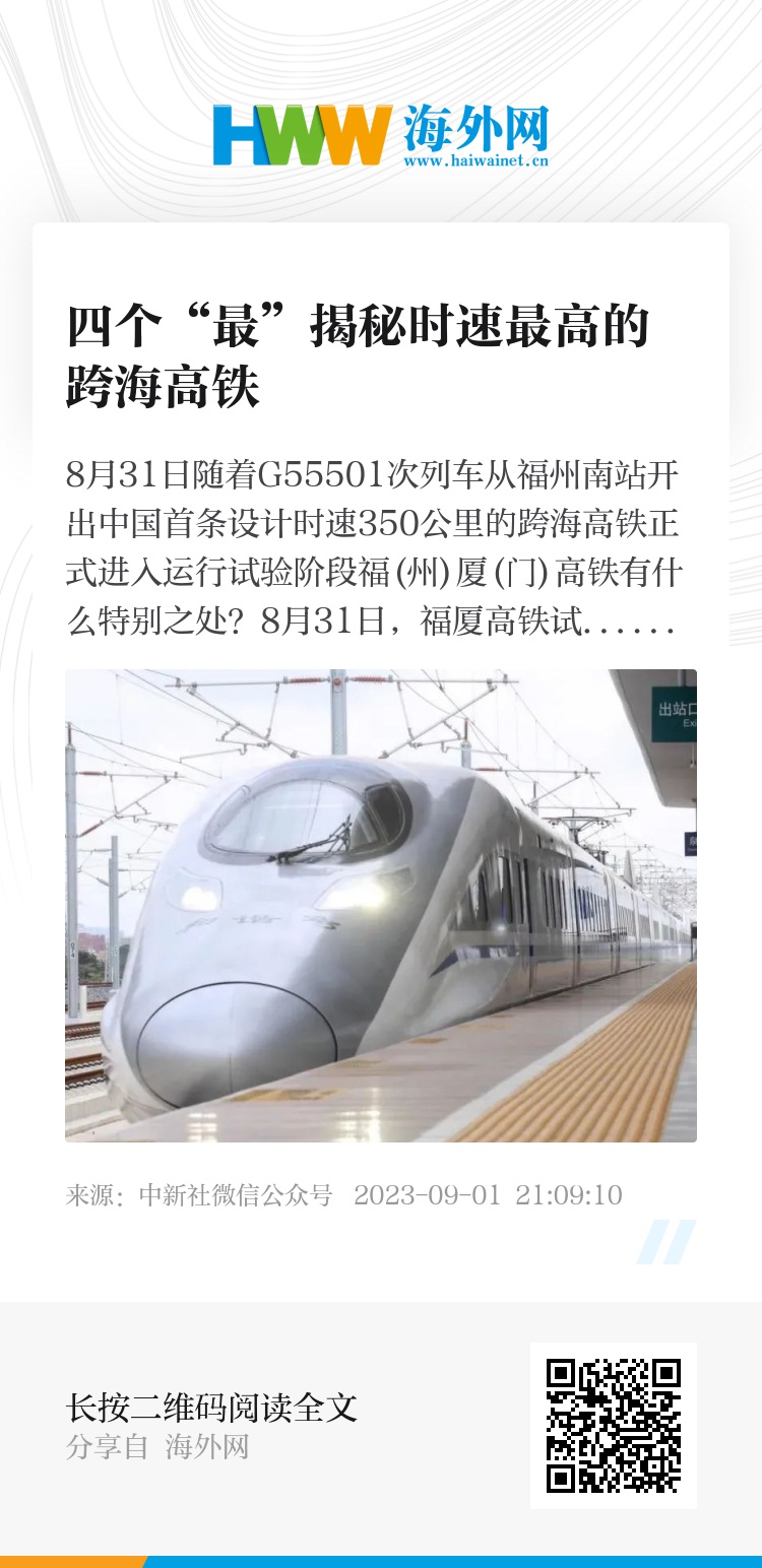 中国国家铁路集团有限公司组织在福厦高铁福清至泉州区段开展了新技术部件在更高运行速度条件下的性能验证试验。6月28日在湄洲湾跨海大桥,该试验列车以单列时速453公里、相对交会时速891公里运行,6月29日在海尾隧道,试验列车以单列时速420公里、相对交会时速840公里运行,对新技术部件进行了有效的性能验证,各项指标表现良好,标志着CR450动车组研制取得阶段性成果,为“CR450科技创新工程”的顺利实施打下了坚实基础。