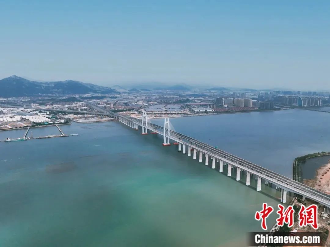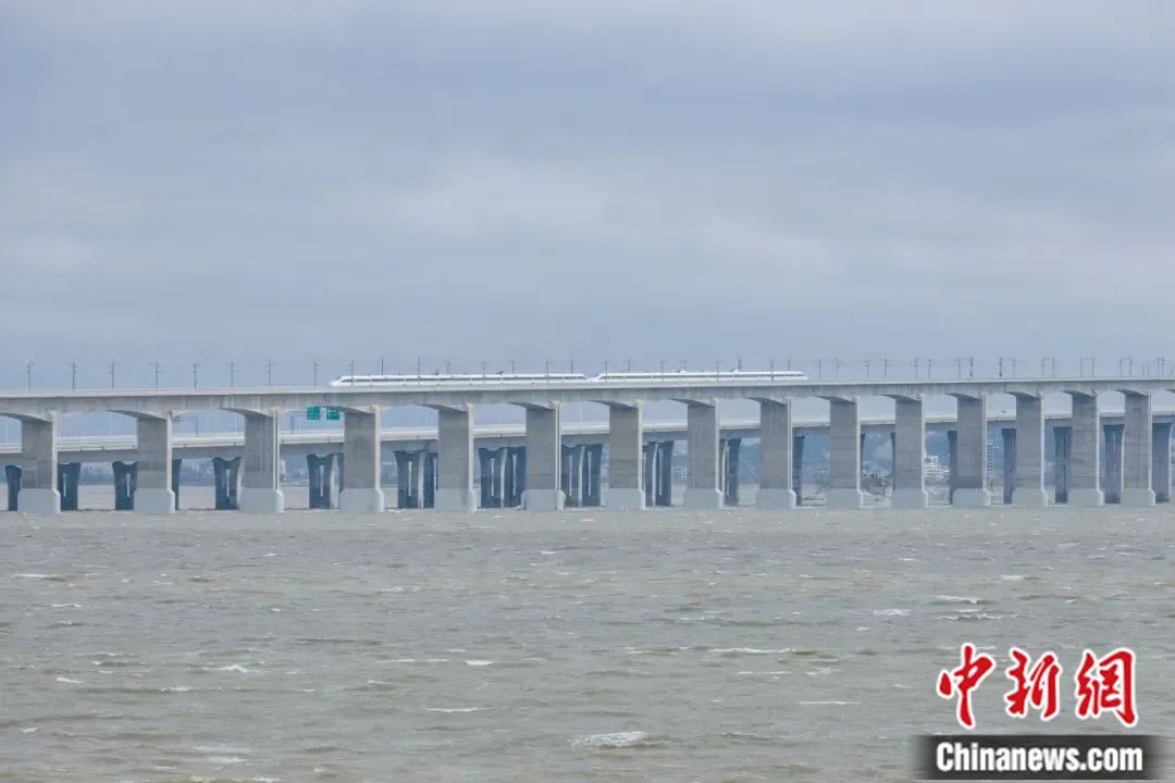 全长9.5公里的安海湾特大桥是世界首座无砟轨道跨海大跨斜拉桥,通车后,动车几分钟就可跨越大海。