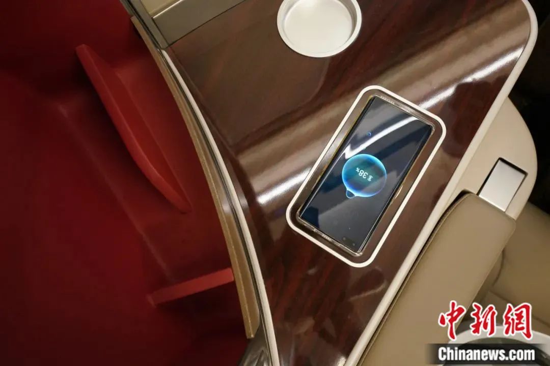 同时,复兴号智能动车组车厢实现Wi-Fi网络全覆盖,座位下的手机充电插口不仅数量明显增加,且在两孔插座之外增加了USB充电插口。