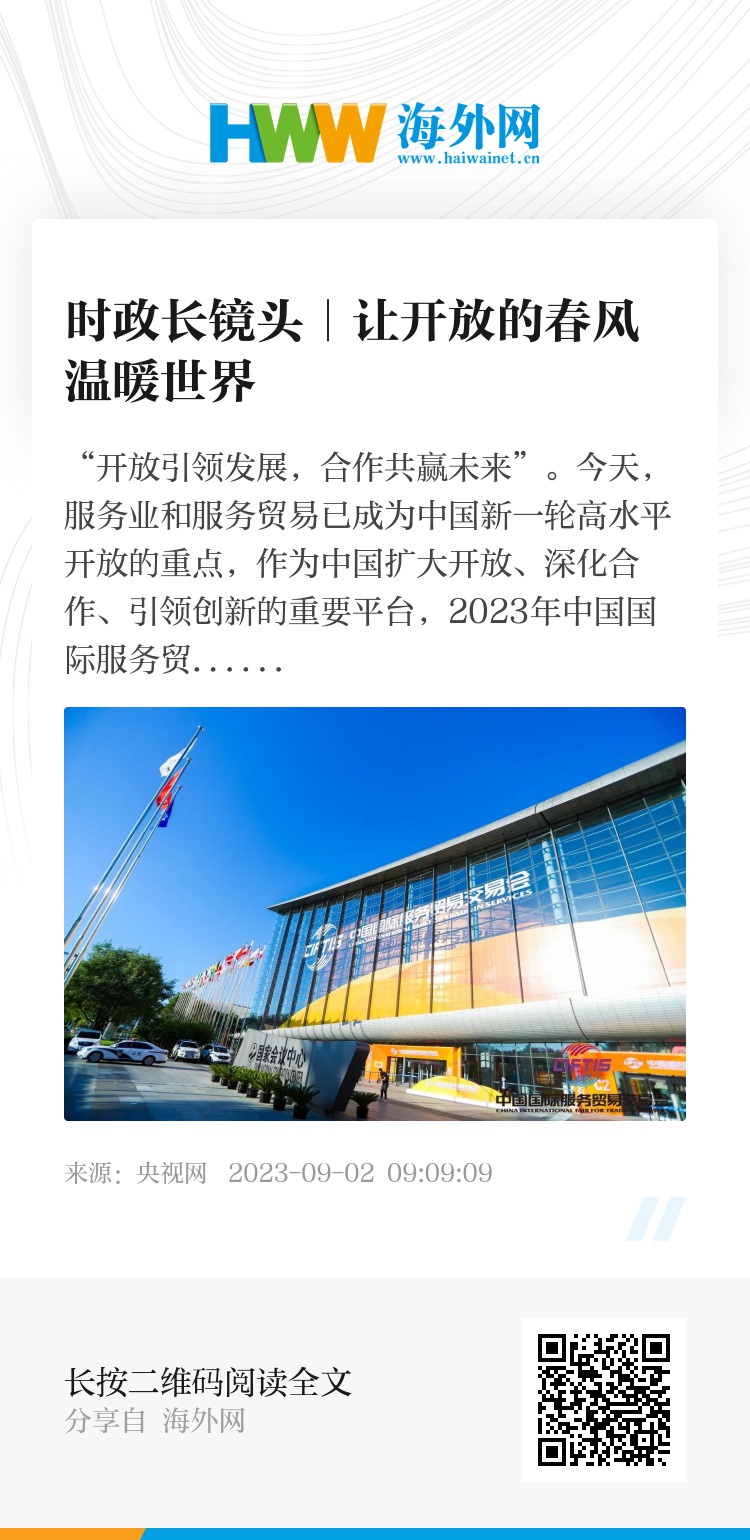 “开放引领发展,合作共赢未来”。今天,服务业和服务贸易已成为中国新一轮高水平开放的重点,作为中国扩大开放、深化合作、引领创新的重要平台,2023年中国国际服务贸易交易会聚焦了全世界的目光。