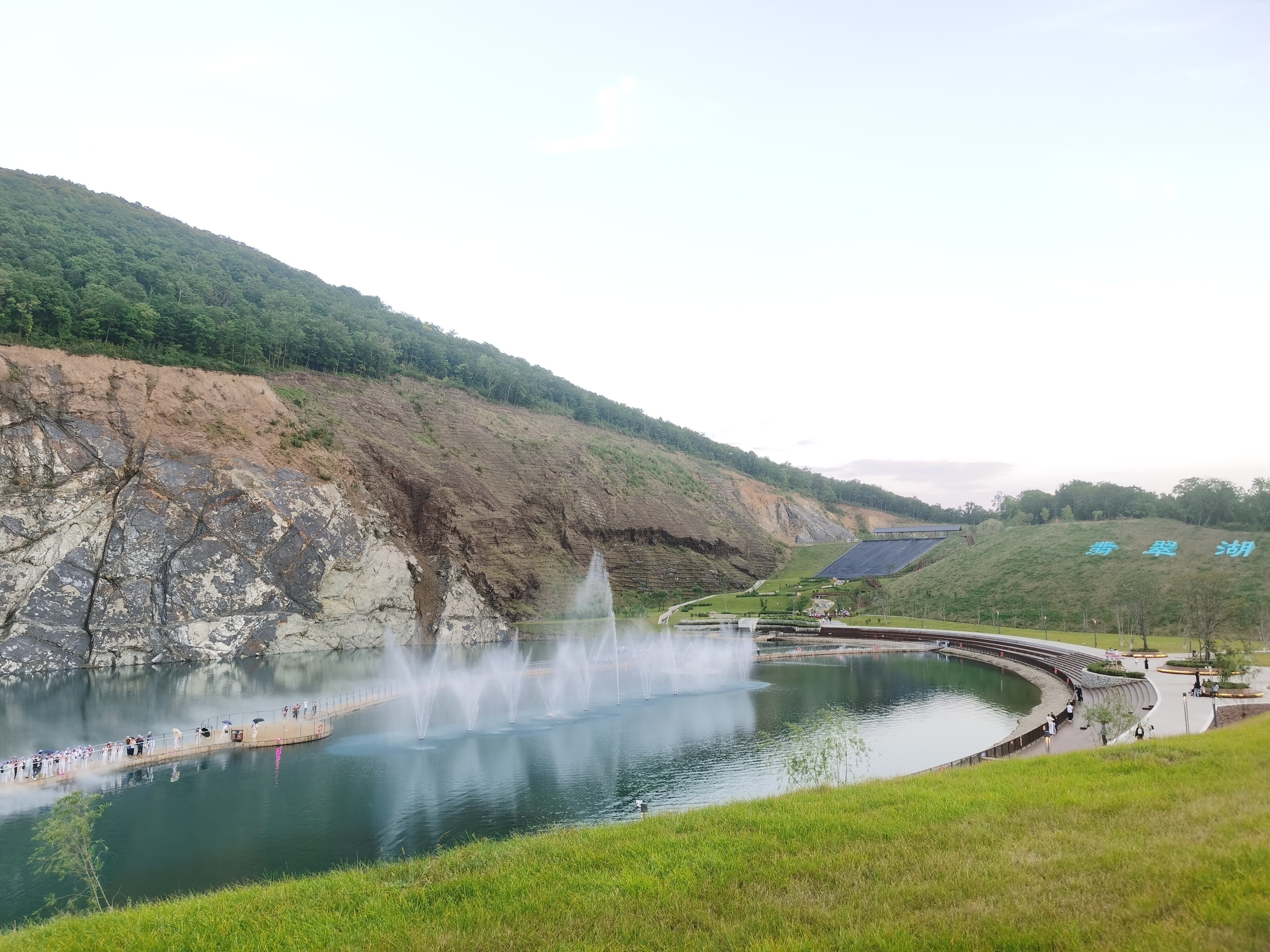 “大家很难想到,这么美丽的风景区,曾经是一处废弃的矿坑。”讲解员向记者介绍,“公园前身是露天开采的页岩矿矿山。由于当时的企业违规开采,造成山体裸露、植被破坏,边坡底部形成采坑。发现问题后,县委县政府决心立刻整改,还绿水青山本来的面貌。”