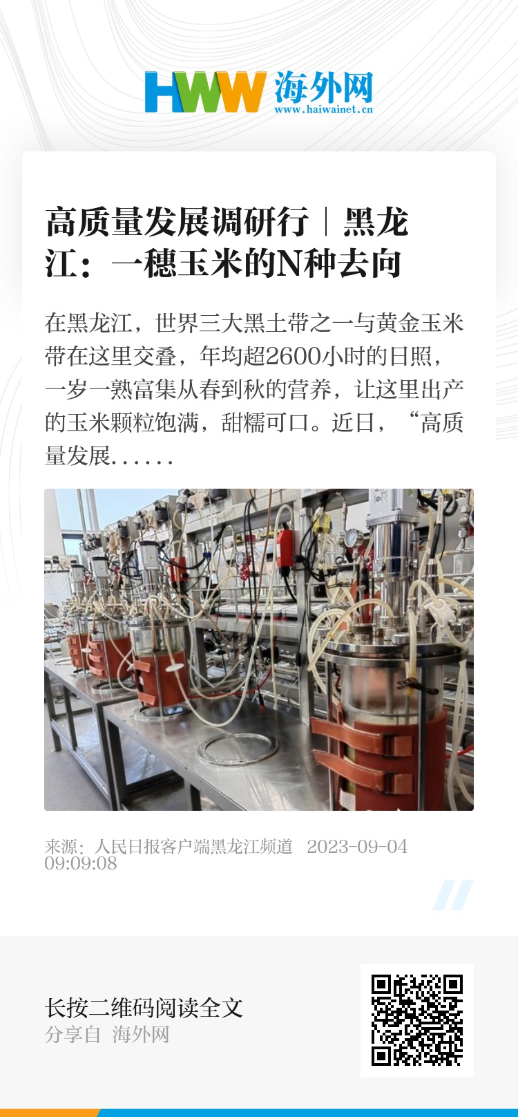 高端鲜食玉米需要精挑细选,而在位于绥化的黑龙江新和成生物科技有限公司生物发酵产业园的实验室里,可以看到“一粒玉米的蜕变”。“我们对于玉米深加工的理念是,一要有高附加值,二要延长产业链。”该公司负责人指着实验室内的发酵罐介绍,“这里正在通过发酵产生辅酶Q10,批量生产的原理是一样的,只是罐子要大得多。”