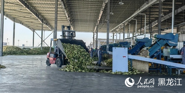 据介绍,绥化市玉米年产量稳定在1000万吨左右,通过引进新和成玉米生物发酵项目,形成玉米淀粉—淀粉糖—葡萄糖—辅酶Q10的国内高端玉米生物发酵产业链,实现从玉米到酒精、淀粉、葡萄糖、氨基酸、维生素等产品的“升级”,走出一条把玉米“吃干榨净”的原材料精深加工之路。该产业园项目全部建成后,年加工玉米能力将突破200万吨。(图片由记者杨雪楠拍摄)
