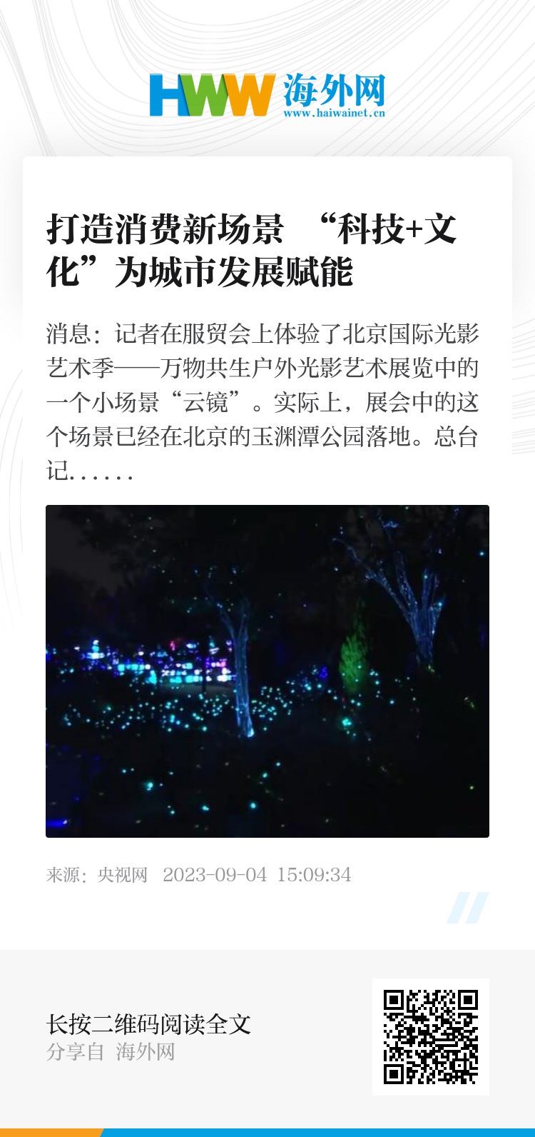 央视网消息:记者在服贸会上体验了北京国际光影艺术季——万物共生户外光影艺术展览中的一个小场景“云镜”。实际上,展会中的这个场景已经在北京的玉渊潭公园落地。
