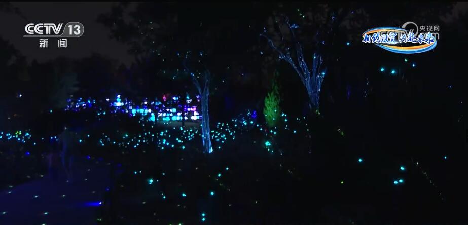 总台记者 邵薇:这里就是位于北京玉渊潭公园璎珞花谷的北京国际光影艺术季万物共生体验展的现场,我所在的位置就是15个主题景观之一的唤灵谷。可以看到我身后就是通过仿生装置模拟萤火虫的布景,今年还首次创新引入了3D裸眼技术,其实这里的总展区面积可达到19000平方米,比大家在服贸会文旅展区中可以体验到的“云镜”大很多。这里所有的景观都是在保留原始园林景观的基础上结合数字技术创造独特的、奇幻的光影世界。替观众朋友感受一下,当我站上这块踏板,它会感应,淅沥的水流缓慢落下,当水流变大,仿佛真正置身到了雨中森林。