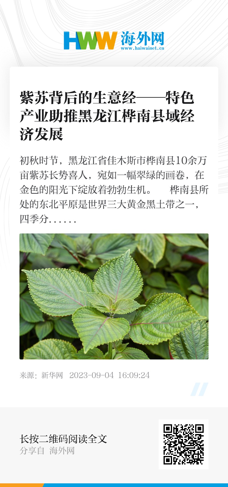 近年来,桦南县着力扶持紫苏产业,以紫苏种植、产业链布局等为抓手,推动特色产业发展,助力乡村振兴和县域经济发展。