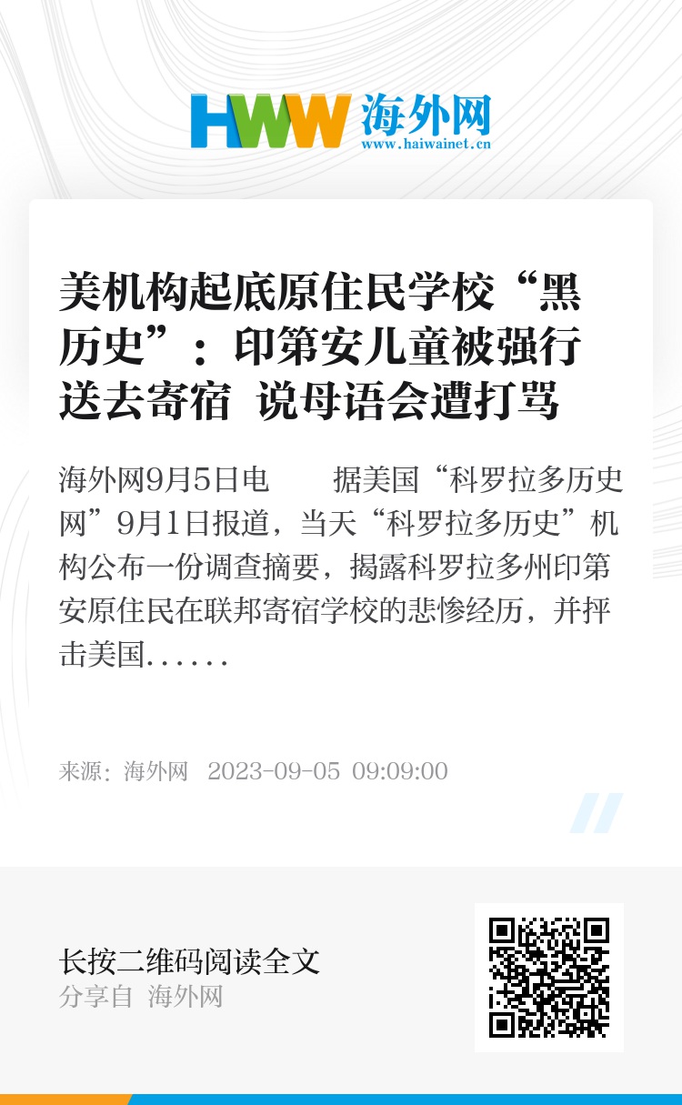 报道称,这份调查摘要长达14页,揭示了美国原住民在寄宿学校遭受虐待、忽视等问题,而美国媒体和联邦当局在一个多世纪中对此一直没有充分报道。