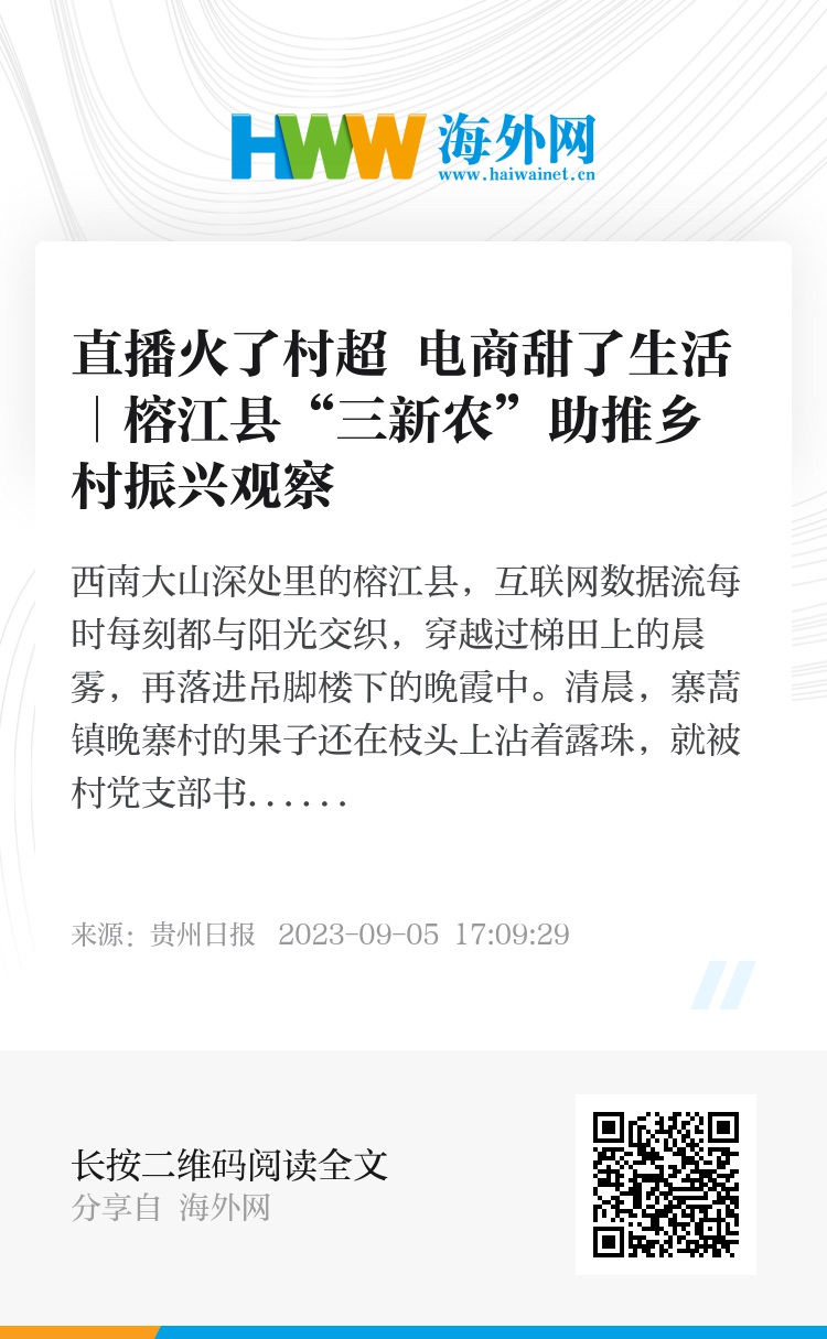 一部手机、一个视频、一场直播,不仅助推了村超火爆出圈,还可以把家乡的名优农特产品和旅游文化推向世界,这是当下榕江县“新农人”践行“三新农”而形成的新的生产方式和生活方式。
