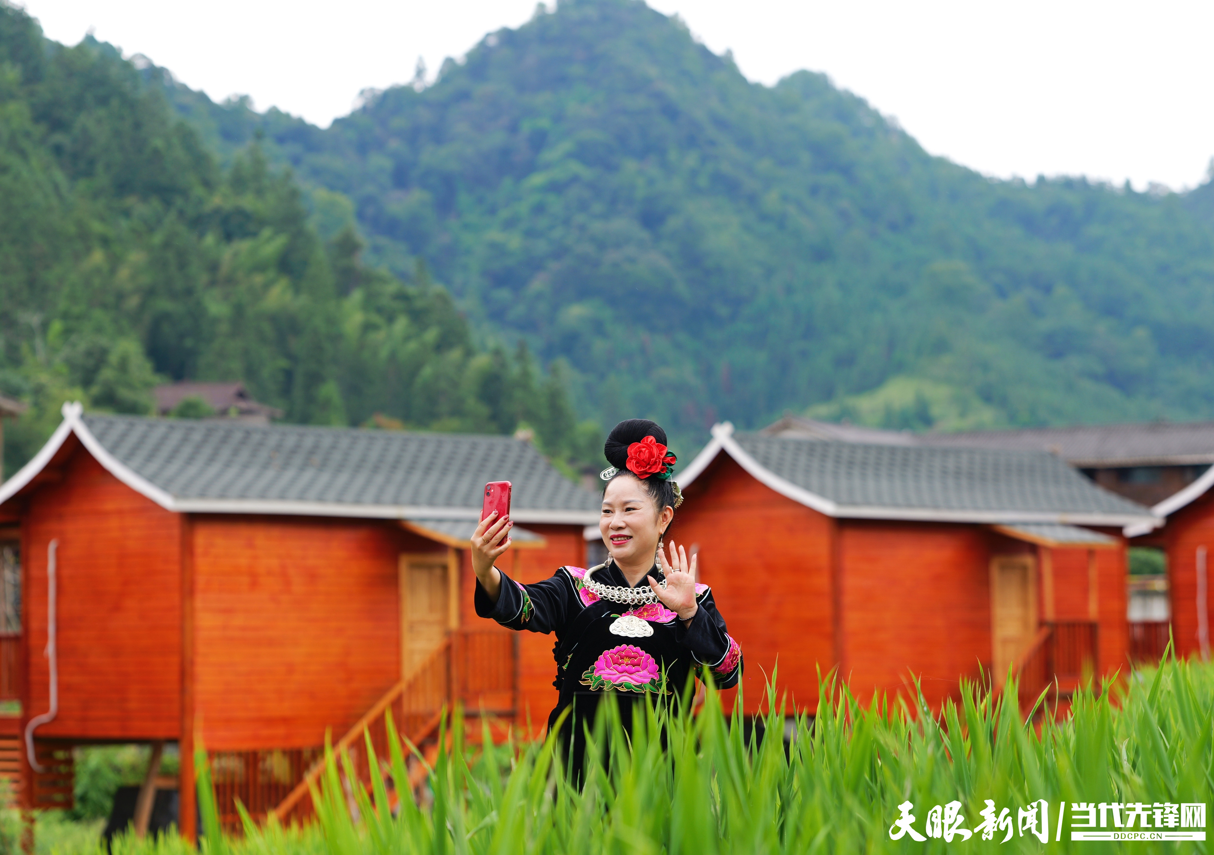在平阳乡小丹江村,村民在拍摄乡村美景,通过新媒体带动文旅产业发展。