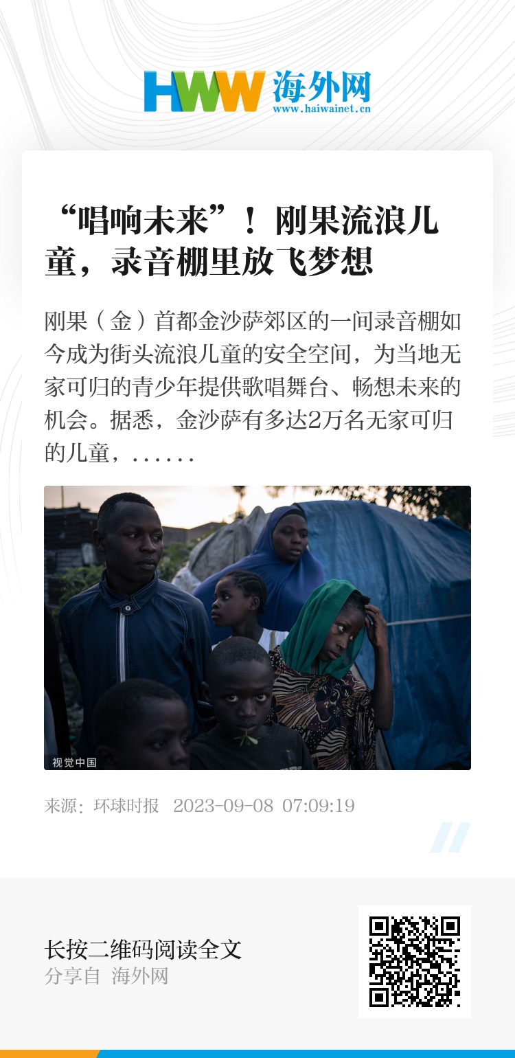 刚果(金)首都金沙萨郊区的一间录音棚如今成为街头流浪儿童的安全空间,为当地无家可归的青少年提供歌唱舞台、畅想未来的机会。据悉,金沙萨有多达2万名无家可归的儿童,他们终日露宿街头,根本没有机会接受教育。