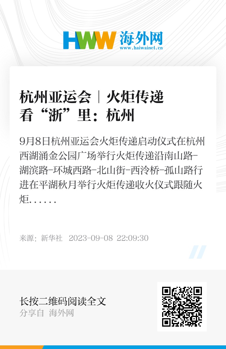 “薪火”传递中国式现代化城市画卷徐徐铺开杭州魅力再次惊艳世界明日“薪火”火炬将传至
