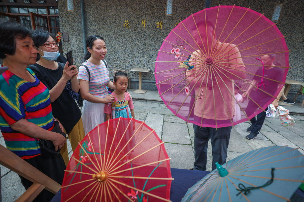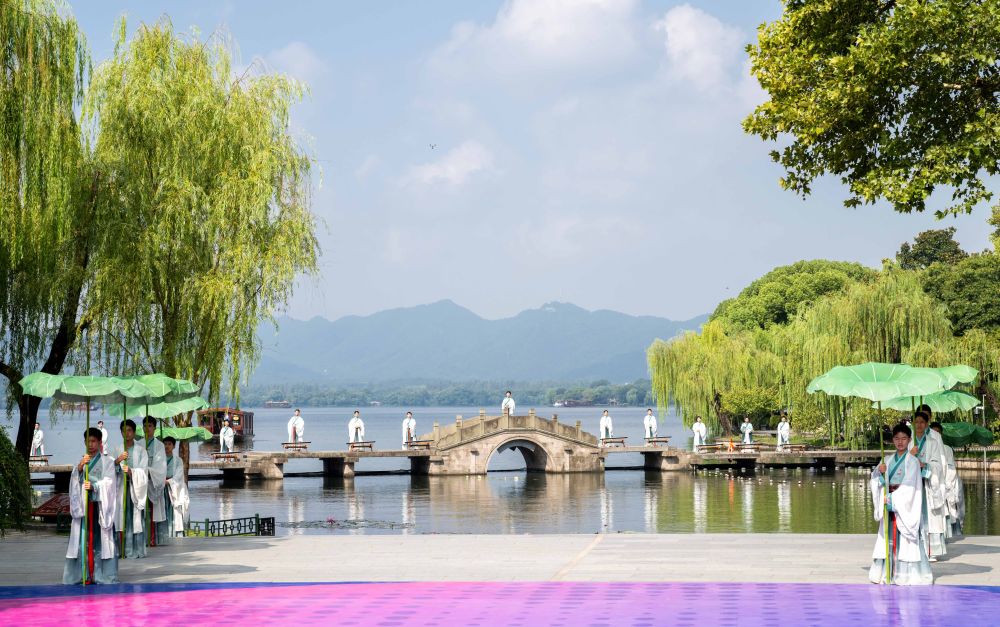 品一壶西湖龙井撑一把西湖绸伞自然与人文穿越时空产生连接