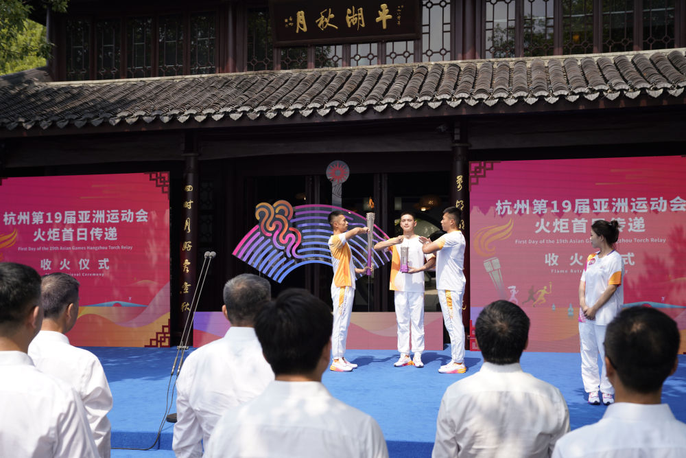 9月8日杭州亚运会火炬传递启动仪式在杭州西湖涌金公园广场举行