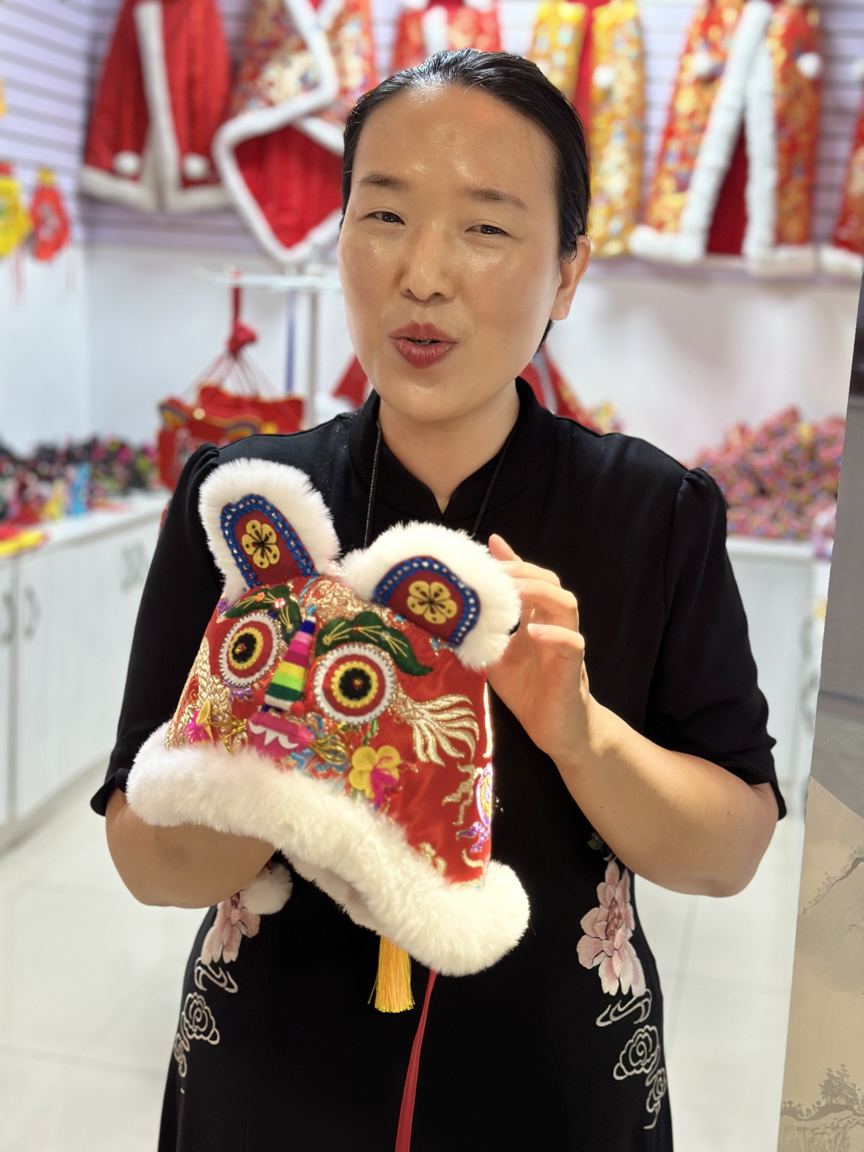 2009年,王海燕回乡创业,在她创办的合作社内,探索新的经营之道。她引入机器加工,提高生产效率,减少人工造成的差异;在必要的手工环节,她推行流水线工作法,每名绣娘只负责一个产品中的某个环节。一顶虎头帽,经几名绣娘的手,有的只做眼睛,有的只做鼻子,最后再组合起来,最大限度保障成品的一致性。她吸纳乡村劳动力,在她的生产流程下,努力让绣娘“人尽其才”:年轻体力好、学技术学得快的,就安排复杂、精密一些的任务;年岁大一些的,就安排相对简单的环节。无论技艺高低,都能获得一份收入。