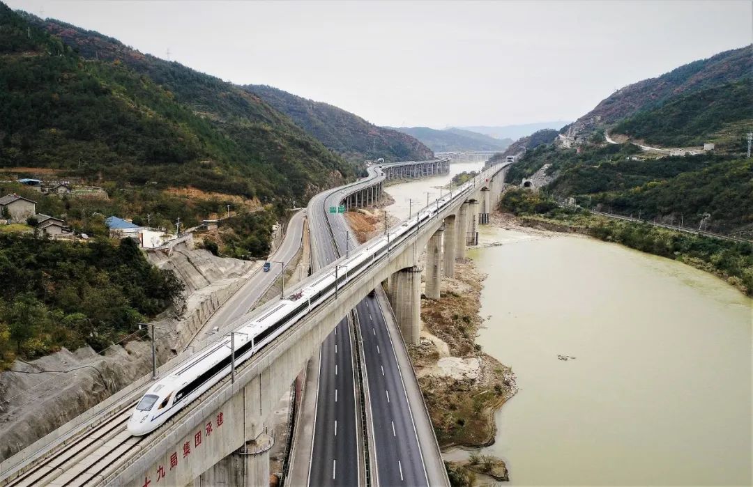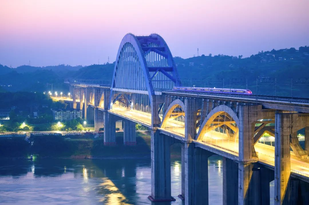 动车组列车行驶在成贵铁路金沙江公铁两用大桥上。朱跃强 摄