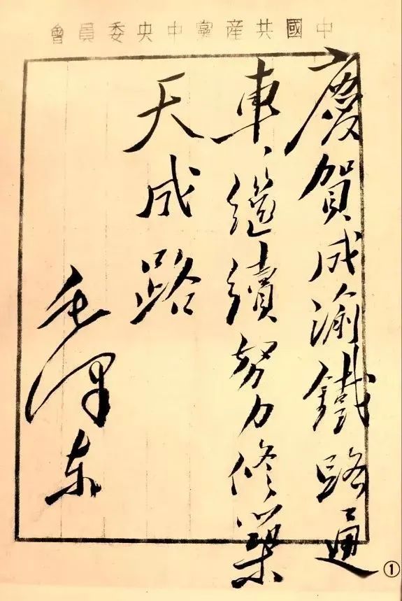 毛主席亲笔题词:庆贺成渝铁路通车,继续努力修筑天成路。资料图