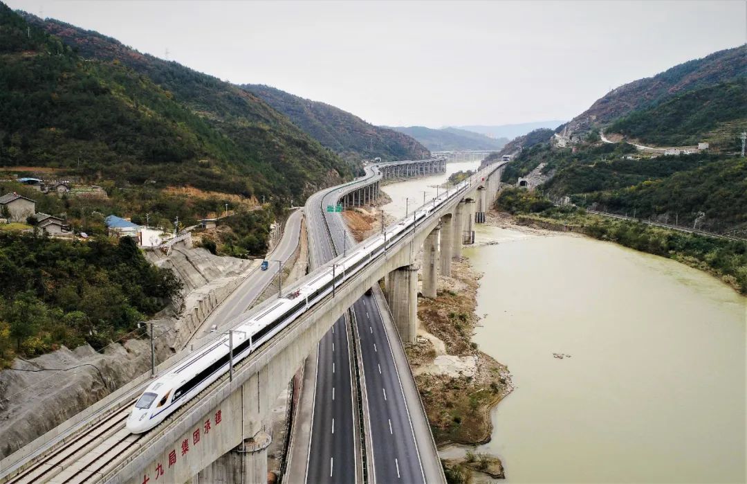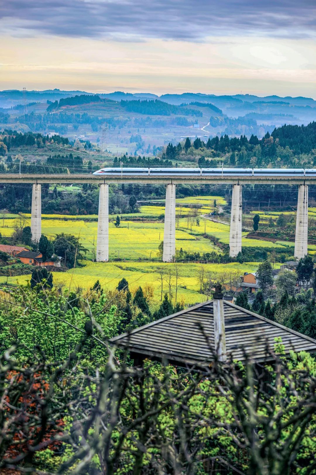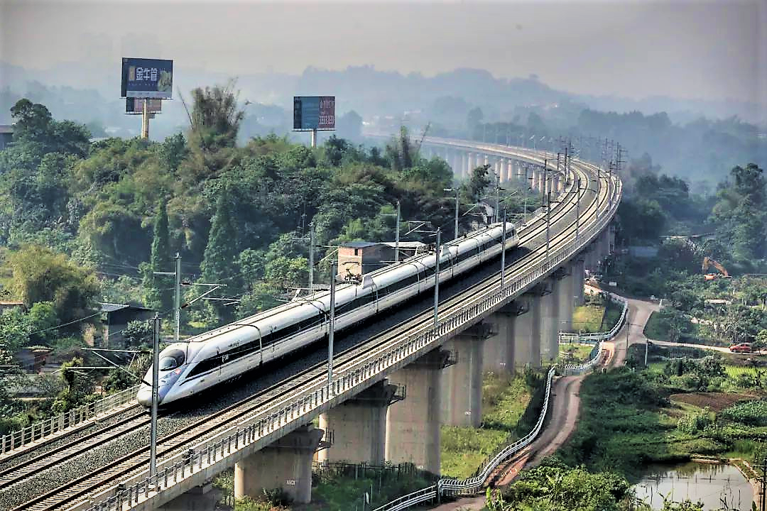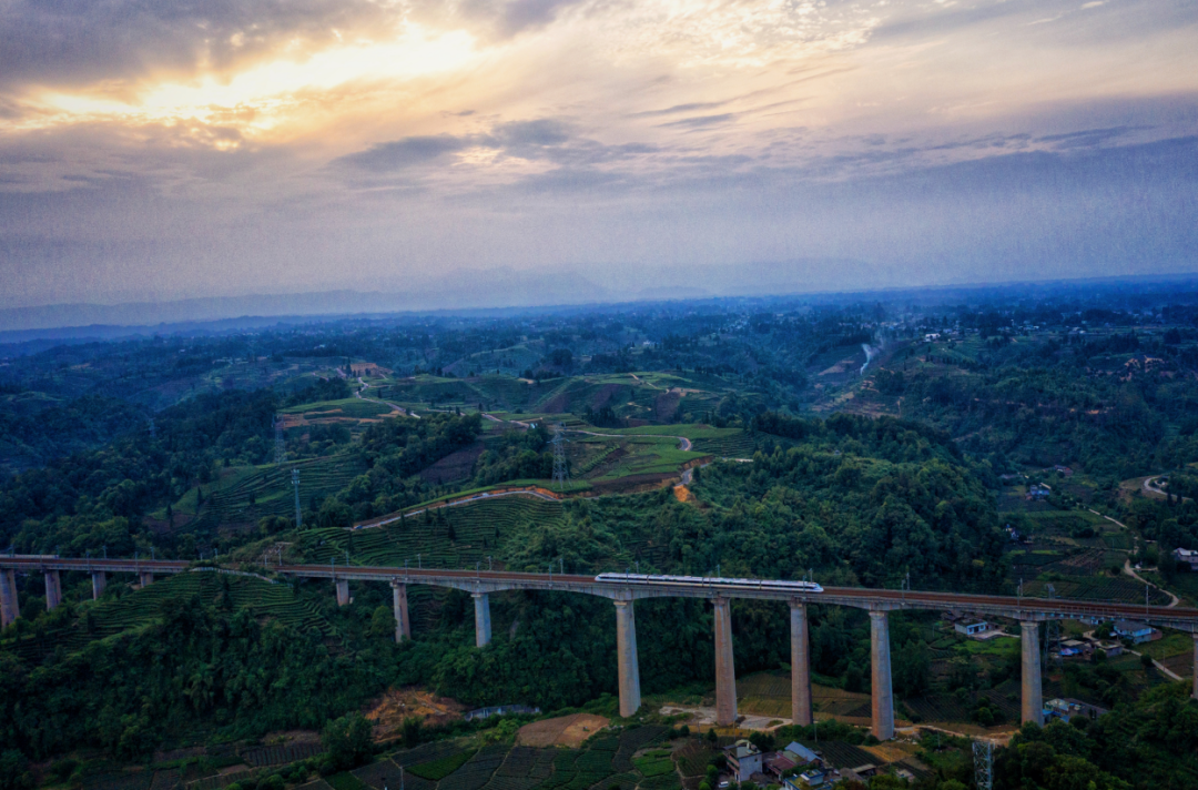 复兴号智能动车组行驶在成渝城际铁路上。茅磊 摄