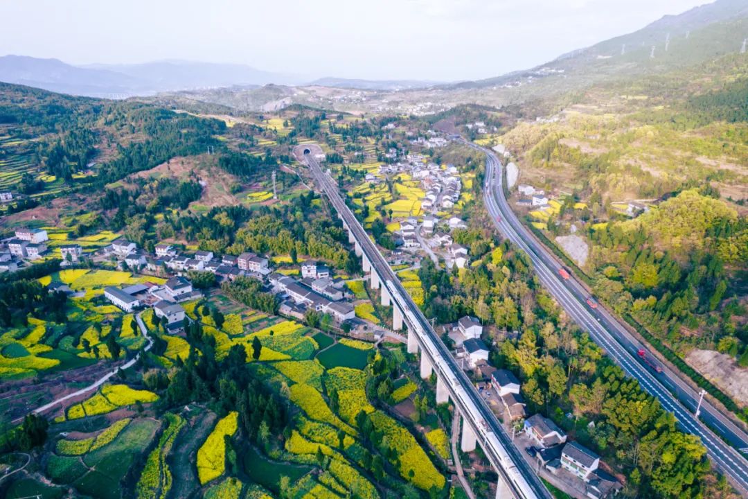 动车组列车行驶在西成高铁德阳市罗江区。袁成奇 摄